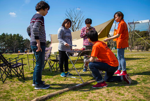 公園型BBQ会場では体験しながら一歩一歩踏み出し、アウトドアスキルを身につける"そなえるCAMP"を実施しています。