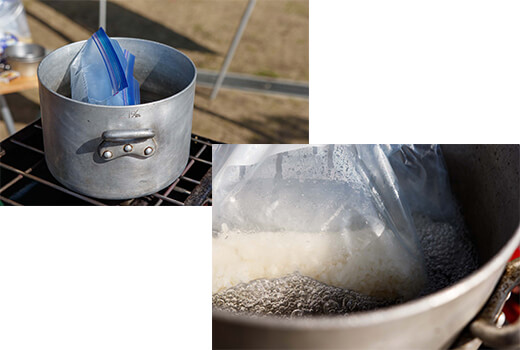 ジップ袋でご飯炊き