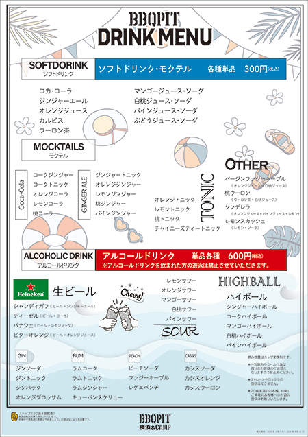プールシーズン以外の営業ではソフトドリンク、 アルコール全て飲み放題OK!!!