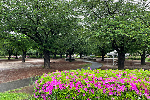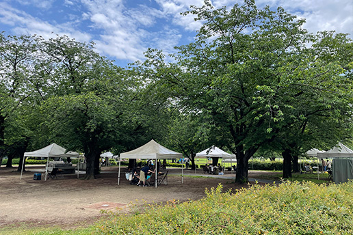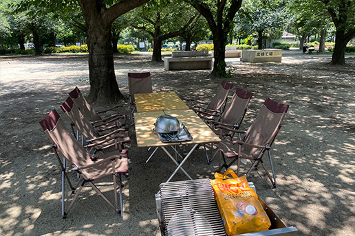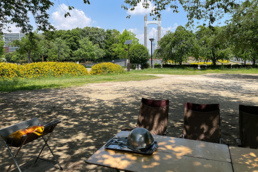 木場駅より徒歩5分とは思えない、緑豊かなセントラルパーク的存在の木場公園。広大な芝の広場に、遊具のあるエリア、東京現代美術館、都市緑化植物園などもあり、BBQの前後に楽しめるものがあり、終日滞在できる立地です。シンボリックな中央のつり橋に、スカイツリーも見ることができるBBQ広場です。