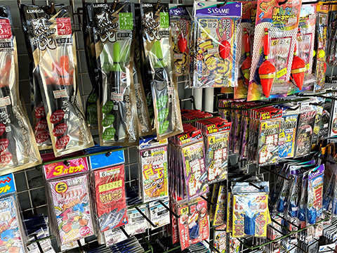 ナスおもり3~15号/中通しおもり/スナップ・ヨリモドシ/ウキ(玉ウキ・フカセ用各種)/釣り針(ハリス付き・単品とも)/電気ウキ/カゴ各種/ロッド・リール