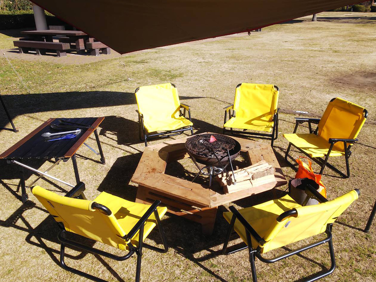 ロースタイルの焚き火専用テーブルとチェアでくつろぎながら楽しもう!