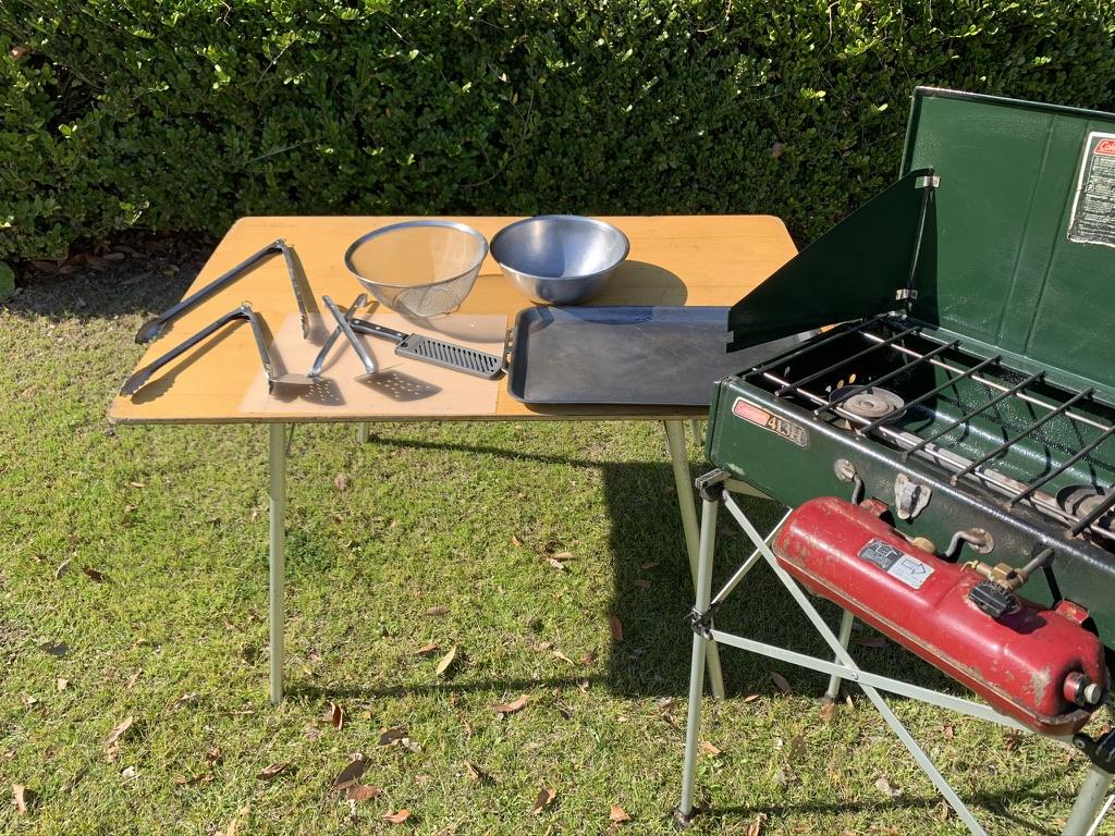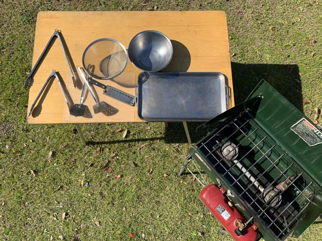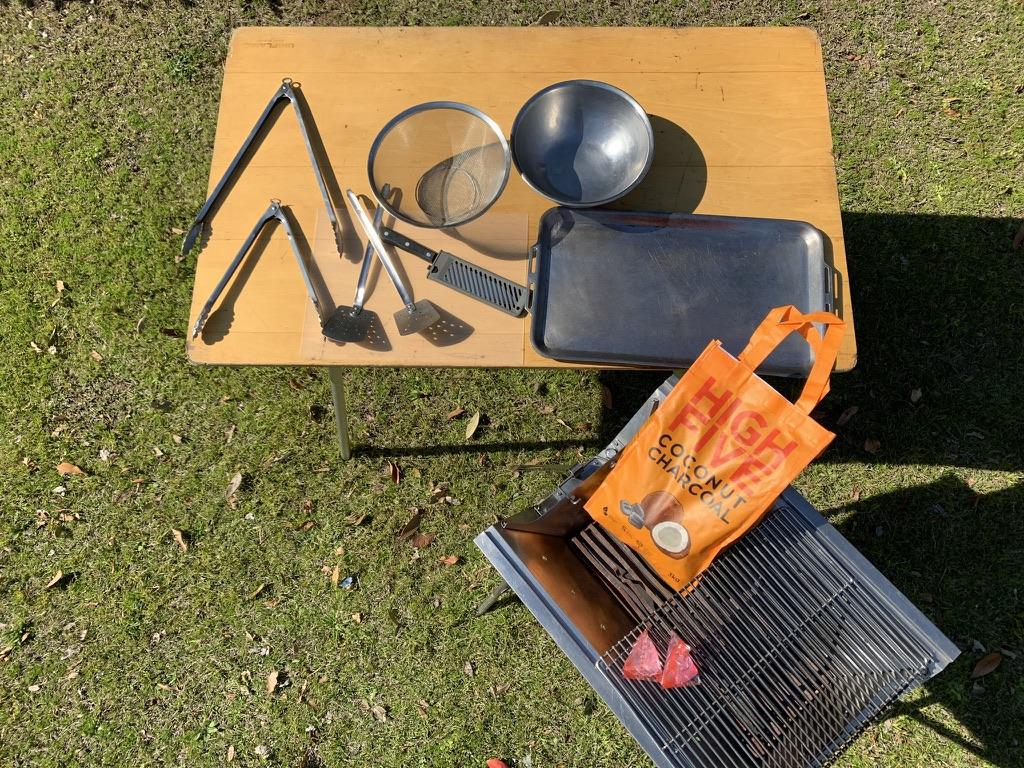 燃焼器材、調理道具、折りたたみテーブルがセットになったおトクなレンタルセットです。