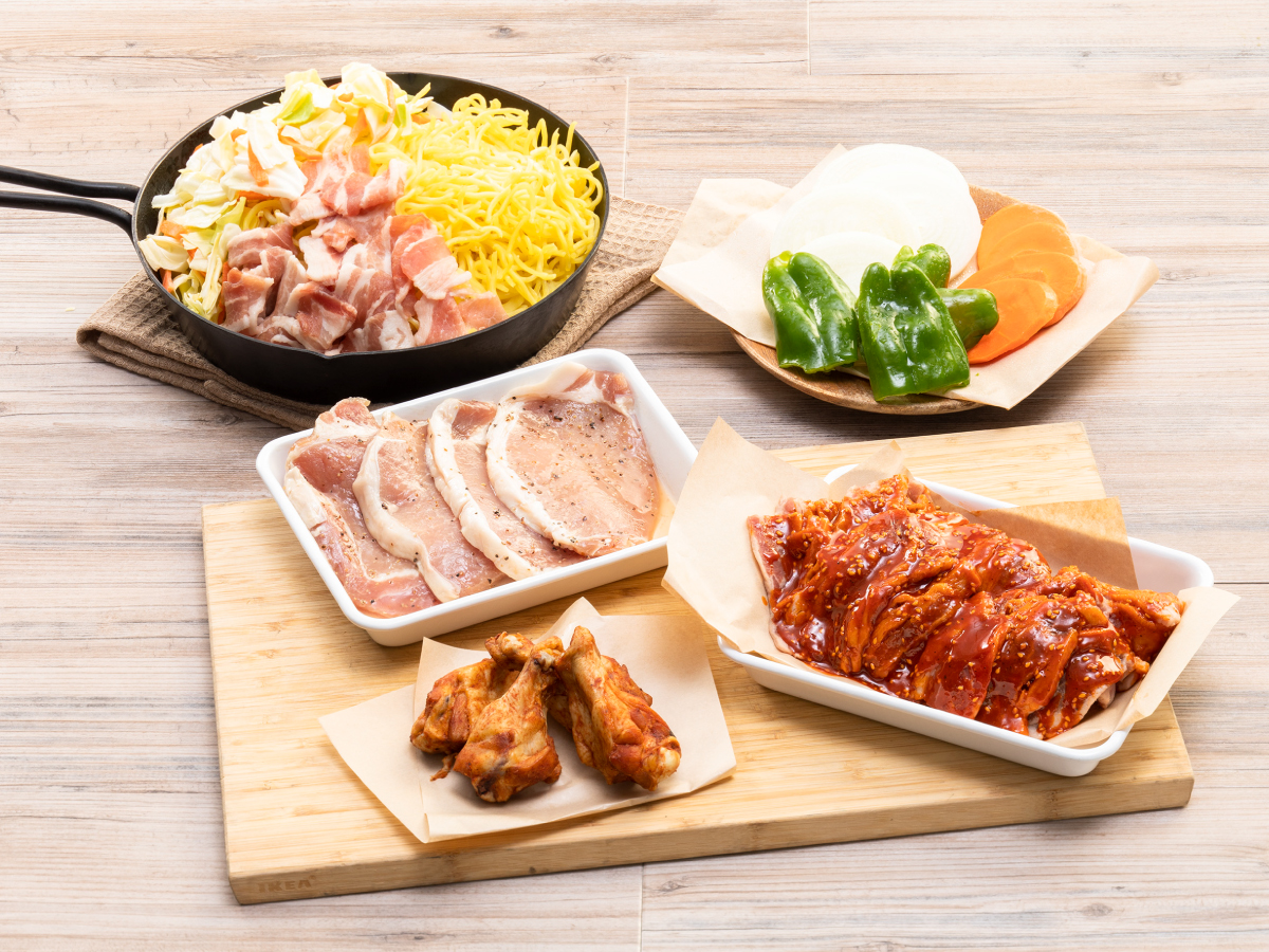 3種のお肉に焼きそばもセットになったスタンダードな食材セット